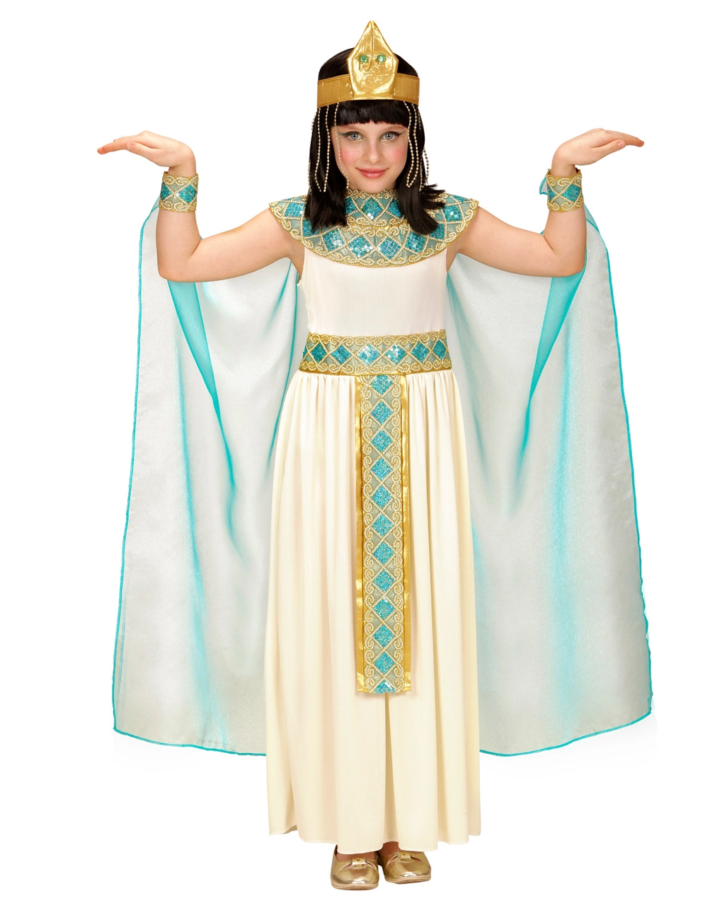 Verkörpere mit unserem 4-tlg. Cleopatra Kinderkostüm Deluxe die gottgleiche Herrin des antiken Ägyptens und führe dein Volk in eine ruhmreiche Zukunft! Die einer Gottkönigin angemessenen Verkleidung wird dir auf den kommenden Faschings Feiern und historischen Mottopartys unter Garantie bewundernde Blicke bescheren!