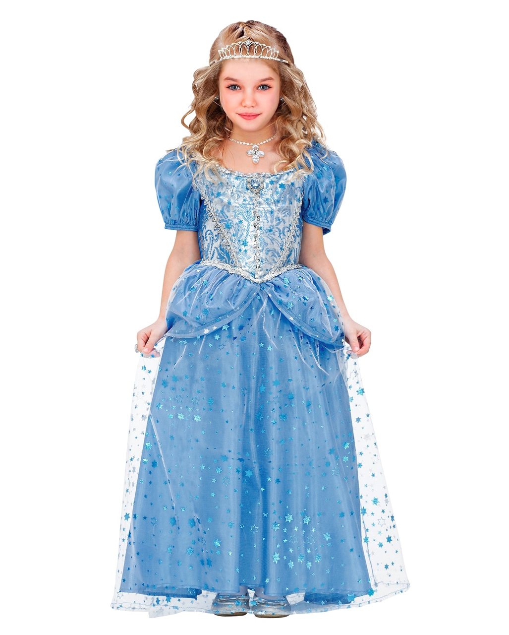 Willkommen im Reich der kleinen Schneeprinzessin. Mit unserem traumhaften Märchenkostüm für Kinder bekommst du eine schöne Verkleidung für den Kinderfasching oder Halloween. Das blaue Schneeprinzessin Kinderkostüm ist mit hübschen Applikationen bestückt. Spitze, Glanzstoff und Tüll machen das blaue Ballkleid zum echten Hingucker. Nun fehlt nur noch dein magischer Zauberstab, um die Welt in eine Eislandschaft zu verwandeln.