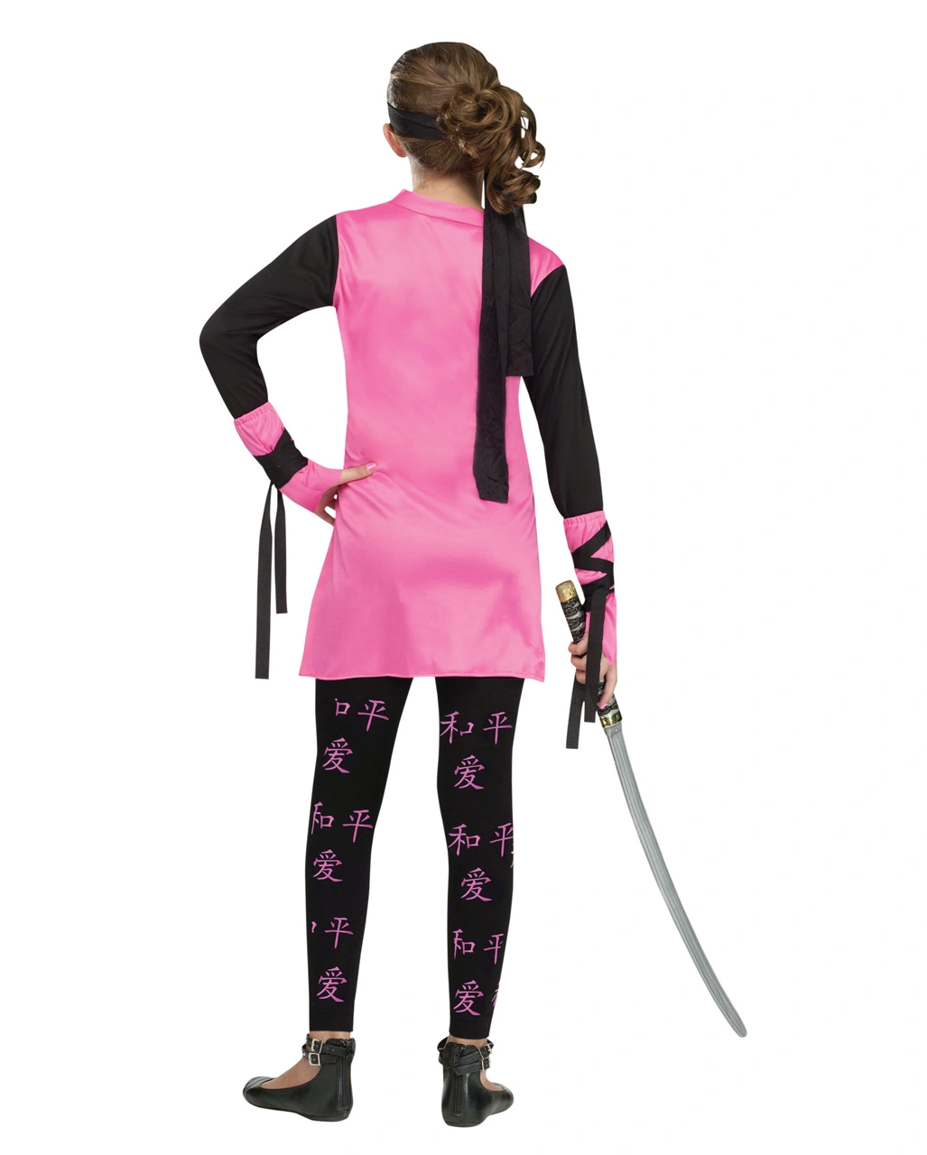 Du hast den Schalk im Nacken und bist immer in Bewegung. Das Drachen Ninja Mädchenkostüm ist ein Mädchen Kostüm für ganz besondere junge Damen. Die Tunika ist schwarz-pink und in einem raffiniertem Design, wie etwa den schwarzen Ärmeln und der schwarzen Schürze verarbeitet. Die schwarze Leggings ist mit Schriftzeichen verziert. Als letztes Detail des Ninja Kämpferin Kostüms ziehst du dir noch das schwarze Stirnband um den Kopf. Passend dazu könnt ihr die Ninja Katana mit Scheide kaufen.