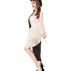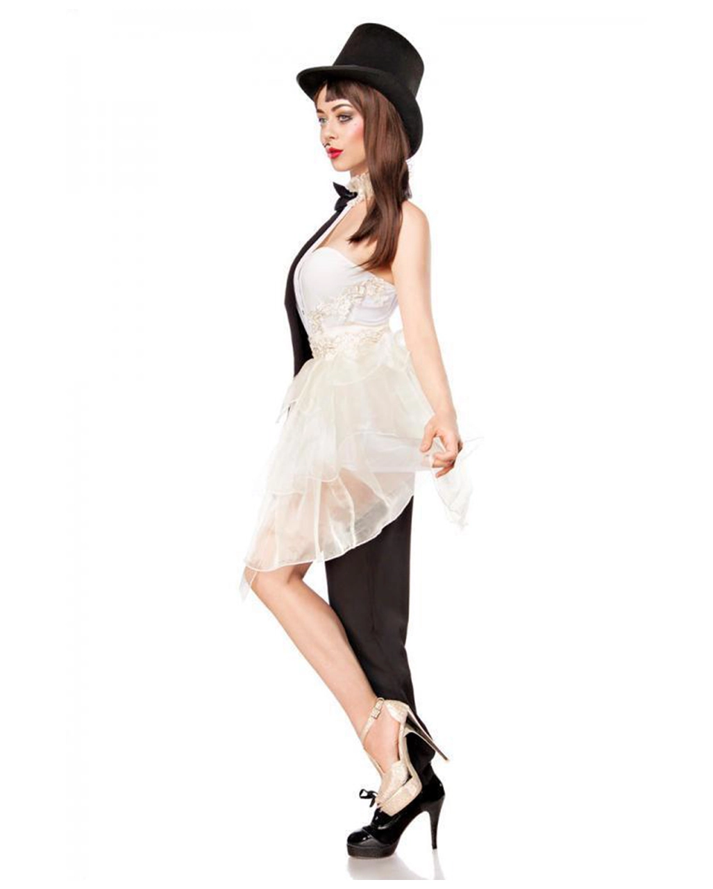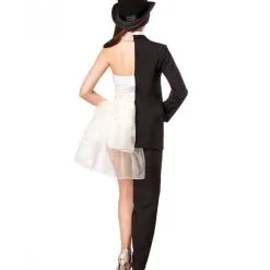 Da werden andere Partygäste garantiert aus dem Häuschen sein, wenn du gleichzeitig als eleganter Bräutigam und verführerische Braut auftrittst. Das grandios aussehende Mann & Frau Cabaret Travestie Kostüm erinnert an die Performances der früheren Kleinkunstbühnen der 20er Jahre. Mit dem Kostüm, dass gleichzeitig Mann und Frau als selbe Person darstellt, wandelst du auf den Spuren von Liza Minelli und dem grandiosen Musicalfilm „Cabaret“.