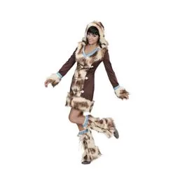 Das Eskimo Lady Kostüm Set besteht aus einem Minikleid mit Kapuze und ein Paar Beinstulpen, die komplett mit flauschigem Fell bedeck sind. Auch das braune Kleid, das bis über die Knie reicht, ist an der Kapuze, an den Ärmelenden, am Dekolleté und am Saum mit Fell verziert. Zusätzlich wurde das Eskimo Girl Kostüm mit hübschen blauen Bordüren und vorne mit einem Knebelverschluss versehen. Extra Tipp: Wir empfehlen für Paare passend zu unserem Eskimo Girl Kostüm das Eskimo Männerkostüm, damit ihr zum Blickfang jeder Halloween- und Kostüm-Party werdet! Wer es eher tierisch mag, ist mit dem Eisbären Kostüm bestens bedient.