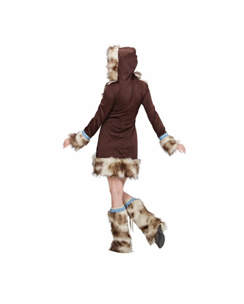 - Lieferumfang: 1 x Eskimo Lady Kostüm Set mit Kleid und Beinstulpen