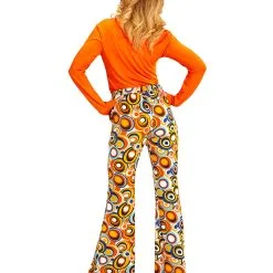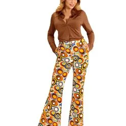Die 70er Jahre prägten die Mode durch einen fröhlichen bunten Stil. Mit der Funky Damen Schlaghose bunte Kreise lässt die gute alte Zeit des Disco Fever wiede aufleben. Die Blicke werden auf der Tanzfläche nur an Deinen stylishem Outfit hängen. Und natürlich wirst Du damit auch im Mittelpunkt der Faschingsfete oder der Kostüm Party, die unter dem Schlager läuft, stehen.
