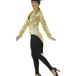 Für glamouröse Motto Feten sowie Karneval und Kabarett ist die Goldene Frauen Pailletten-Jacke wie gemacht. Du kannst Pailletten Jacke nach Belieben kombinieren. Mit einem schwarzen Zylinder wird aus dir eine elegante Show Tänzerin. Oder trage die Pailletten Faschingsjacke für deinen Auftritt als Zauberin zur nächsten Karnevals Party. Mit diesem schicken Pailletten Frack sind der Fantasie keine Grenzen gesetzt.
