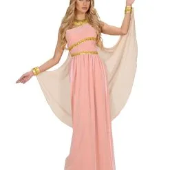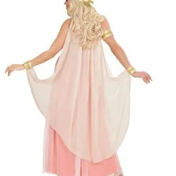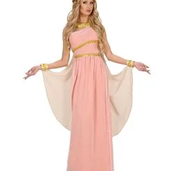 Aphrodite ist die griechische Göttin der Liebe, als auch der Schönheit und der sinnlichen Begierde. Das edle historisierende Kostüm der griechische Göttin Aphrodite besteht aus einem zartem, pfirsichrosa farbenen Kleid welches mit golden Bordüren verziert ist. Das griechische Göttin Aphrodite Kostüm ist bodenlang und lässt eine Schulter frei und hat eine Schleppe welche an den goldenen Armreifen befestigt ist.