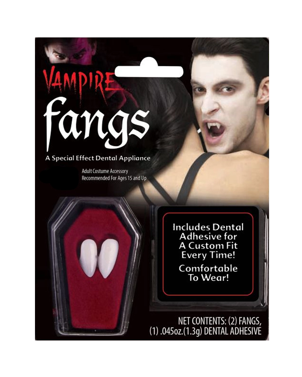 Die Vampir-ZĂ€hne sind trotz Ihres gĂŒnstigen Preises aus professionellen Dentalmaterial hergestellt. Die einfachen Vampir-EckzĂ€hne werden mittels mitgelieferter Abdruckmasse an die eigenen EckzĂ€hne angepasst und befestigt. Die Acryl VampirzĂ€hne economy können öfters benutzt werden, bzw. zum Essen kurzfristig immer mal wieder herausgenommen werden. Die Vampir-ZĂ€hne economy sind eine preiswerte Anschaffung fĂŒr Halloween und Karneval und lassen sich trotzdem sehen.