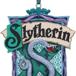 Lasse dich von der Welt der Hexerei und Zauberei entführen mit diesem offiziellen Harry Potter Slytherin Wappen Hängeornament 8cm. Das Wappentier des Hauses ist eine Schlange, deren Mitglieder sich durch ihren Einfallreichtum, ihre Führungsqualitäten und ihre Gerissenheit auszeichnen. Dieser Baumschmuck ist ein echter Blickfang in jeder Hinsicht! Gegossen in feinstem Polyresin und anschließend fachmännisch handbemalt, ist dieses Stück das perfekte Mitbringsel für Zauberer, Hexen und sogar für Muggel.