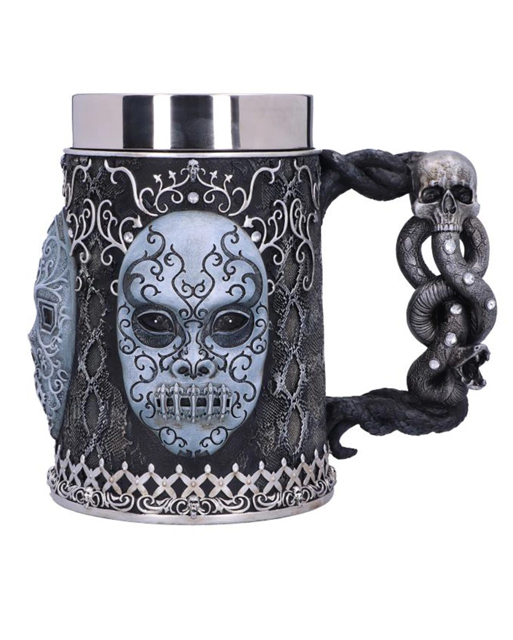Natürlich ist dieser dekorative Krug auch eine wunderbare Geschenkidee für Harry Potter und insbesondere für Lord Voldemort Fans. Gegossen wurde er aus hochwertigem Polyresin, bevor der Harry Potter Todesser Krug fachmännisch von Hand bemalt wurde. Mit seinen düsteren Details ist dieser Sammlerkrug die perfekte Ergänzung für jede Harry Potter Sammlung und kann von Hexen, Zauberern und Muggeln gleichermaßen genossen werden. Der Bierkrug verfügt über einen Einsatz aus Edelstahl, was für eine leichte Reinigung sorgt.