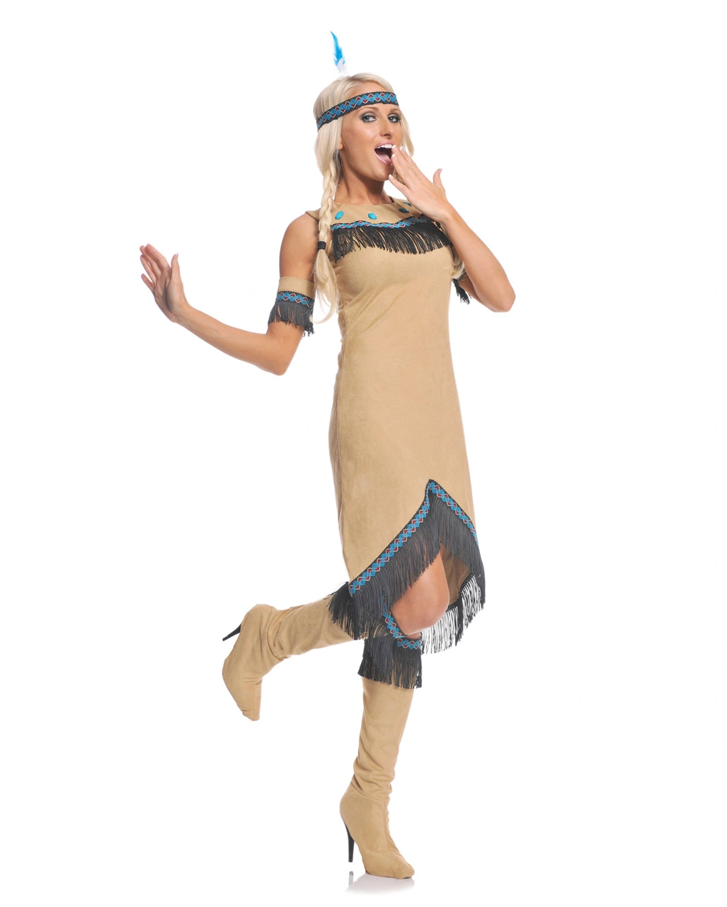 Lieferumfang: 1x Indianer Maid Frauenkostüm mit Fransen