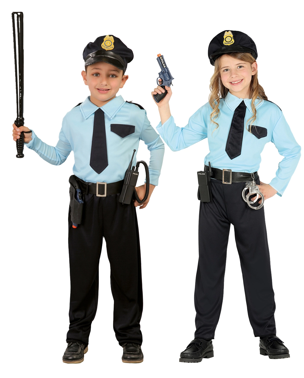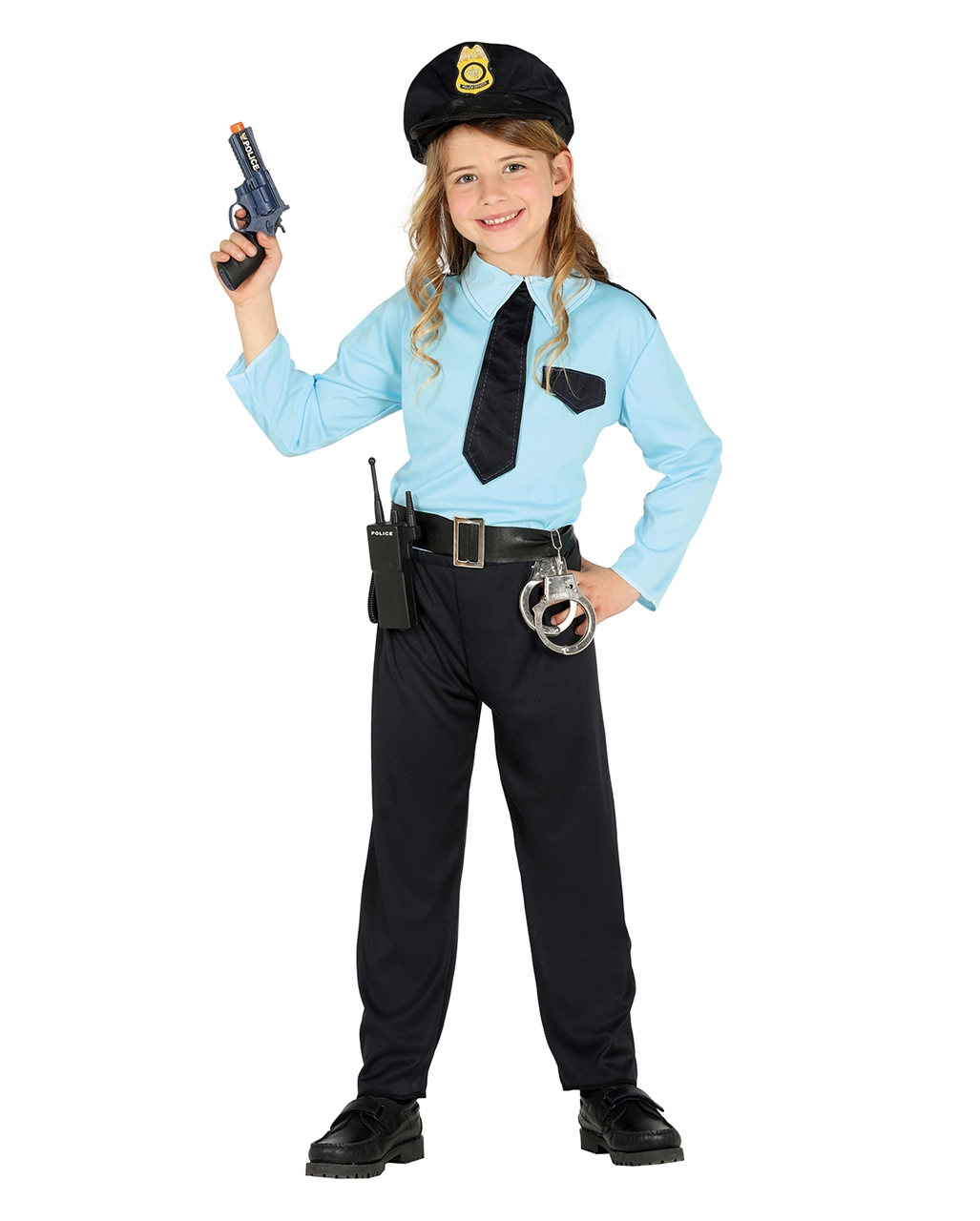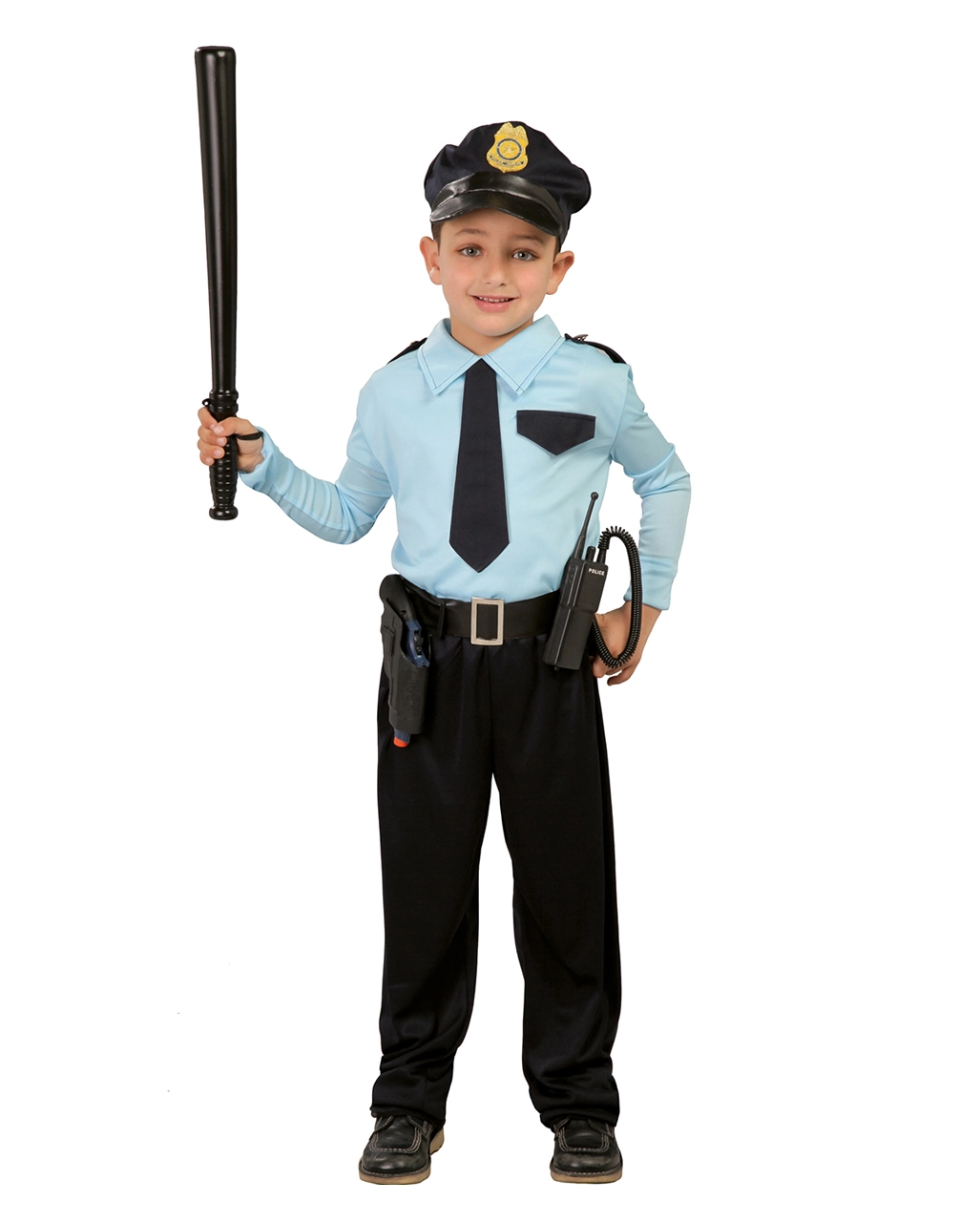 Mit dem Kinderkostüm Polizei ist er oder sie von Kopf bis Fuß bestens ausgestattet. Angefangen bei der schwarzen Hose und dem entsprechenden hellblauen Hemd, das die stilechten Embleme auf den Schultern enthält. Passend dazu gibt es die stilechte schwarze Krawatte und den schwarzen Gürtel. Und weil ein echter Polizist ja als erstes an seiner Polizei-Mütze zu erkennen ist, darf auch diese natürlich nicht fehlen. Passend dazu haben wir auch noch die Euro-Cop 13-Schuss Pistole im Shop. Oder Ihr schaut nach anderen tollen Alternativen wie dem Polizist Kinder Kostüm.