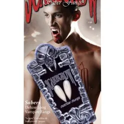 Die 2,5 cm langen EckzĂ€hne werden mittels beiliegender Abformmasse und Unterdruck auf den eigenen ZĂ€hnen gehalten und können immer wieder verwendet werden! Die Scarecrow VampirzĂ€hne XL werden in einer schönen Sargbox geliefert, die zur Aufbewahrung deiner VampirzĂ€hne dient. Die Packung enthĂ€lt ein paar Scarecrow VampirzĂ€hne extra lang, Abformmasse zum AnrĂŒhren und eine Beschreibung. Um dein Auftritt als blutrĂŒnstiger Vampir noch realistischer zu gestalten empfehlen wir Dir noch unser Spezial FX Kunstblut.