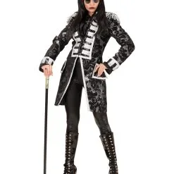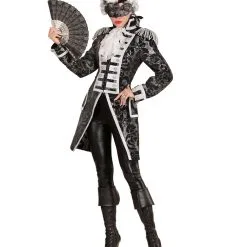 Mit unserem silber-schwarzen, venezianischen Damenfrack kannst du perfekt unterschiedliche Verkleidungen gestalten. Ganz gleich ob du einen weltweit gefeierten Rockstar, eine unerschrockene Piratin, eine geheimnisvolle Gothic Gräfin oder ein Musketier darstellen willst, die Brokat Jacke in Schwarz und Silber mit Schulterklappen ist das perfekte Mix & Match Kostüm!