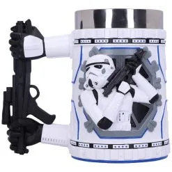 Unser Star Wars Krug Stormtrooper besteht aus hochwertigem Kunststein. Es handelt sich um einen Wars Fanartikel, der sich zum Verschenken und als Sammlerstück eignet. Zu sehen ist ein Sturmtruppler mit erhobener Waffe sowie ein Griff, der von den Handschuhen des Troopers gebildet wird und eine Waffe umgreift. Sichere dir noch mehr Star Wars Merch wie den Star Wars Stormtrooper Rock On Figur 18cm