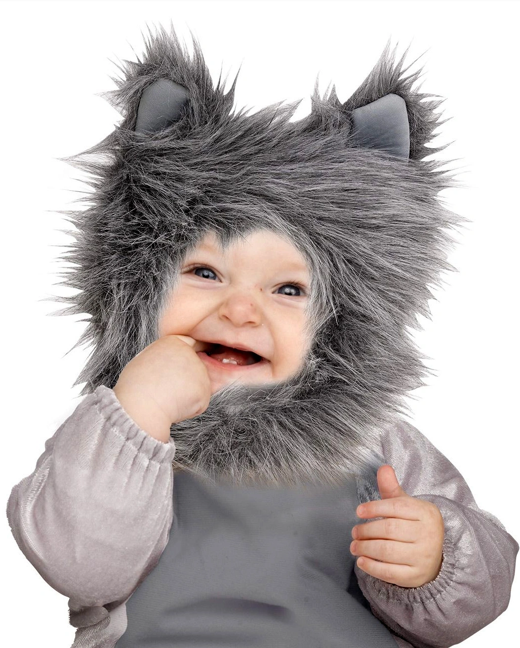 Das süßer Wolf Kleinkinderkostüm ist eine graue Wolfsverkleidung mit Kunstfell-Mütze & abnehmbaren Wolf-Schwanz. Der kuschelig warme Karneval Kostümanzug aus plüschigem Stoff mit dunkelgrauem Bauch sowie Anti-Rutsch-Noppen an den Füßen & putzigen Tatzen-Aufdruck ist ein besonders hübsches Faschings Baby Kostüm Exemplar. Die Mütze des Kostüms hat Wolfsohren sowie vorne am Kopf grau meliertes Kunstfell & kann mit einem Klettverschluss am Hals verschlossen werden. Am Rücken & im Schritt sorgen Druckknöpfe für einen hohen Tragekomfort deines Kindes. Die Mama ins Rotkäppchen Kostüm & die Faschings Umzugs Tour an kann starten.